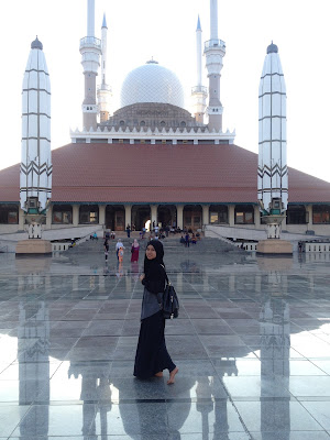 Besok siangnya, tepat setelah jumatan kami makan siang di Giggle Box dan membelokkan arah yang tadinya mau ngunjungin Papa Cheng Ho jadi puter-puter cari Tahu Baxo bersama Mas Ferry dan Mba Dewi. Bersyukur kami bisa singgah dulu ke Masjid Agung Semarang yang katanya punya payung-payung kaya Nabawi.